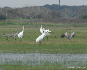 Whooping Cranes and Sandhill cranes share the field Whooping Cranes and Sandhill cranes share the field