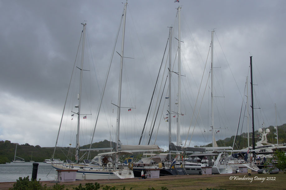 The rain started coming down on our way to Nelson’s Dockyard, another part of Antigua and Barbuda National Park. It was pouring as we walked through the dockyard so we weren’t able to do much exploring or take many photos. We made our way along the waterfront and found cover in a crowded bar where we watched the rain come down.