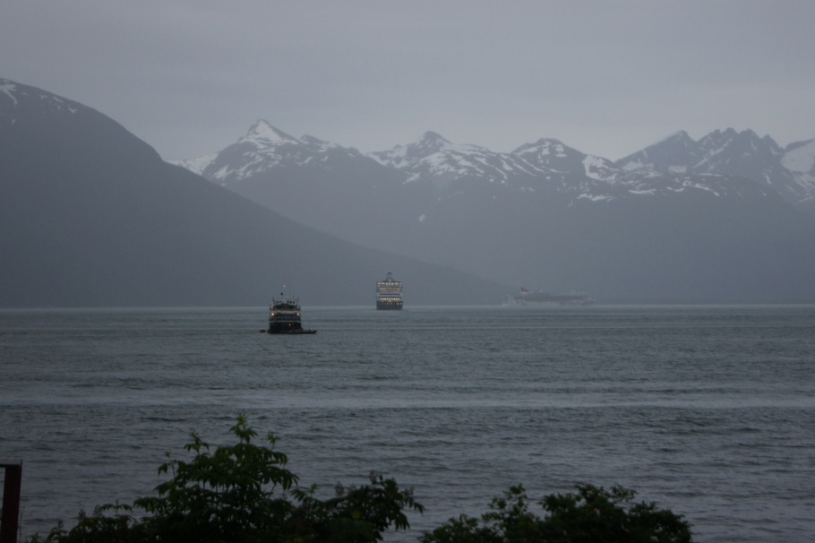 My header image is the final edited version of a favorite image from our 2013 RV trip to Alaska. We camped in a waterfront campground in Haines, Alaska for about a week. The following image is the original photo I took one rainy night from our campsite.