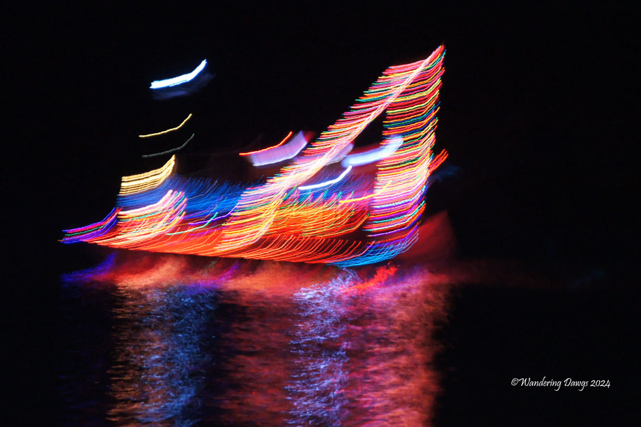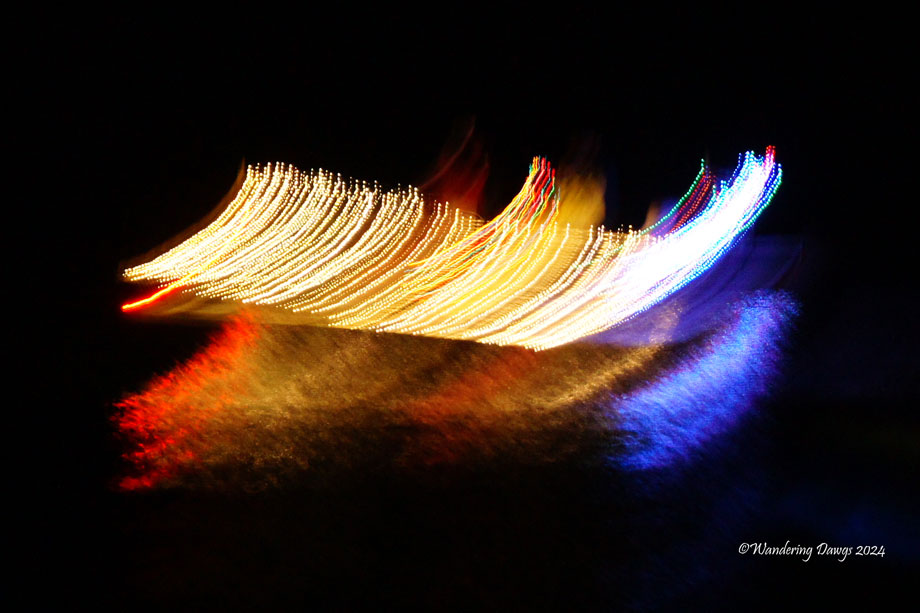 My attempts at taking photos of lights after dark usually don’t turn out the way I expected. My first images are examples of ones that didn’t turn out like I planned but I like them and kept them anyway. The header photo is of a friend’s Christmas yard lights. These next two are from a Christmas boat parade.