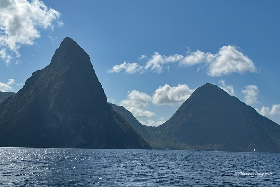 The famous Pitons in St. Lucia are a beautiful sight to see from the water.