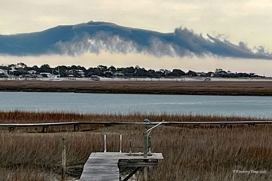 It looks like a mountain range in the background with a mist hiding the lower part of the mountains! Nice capture. LikeLiked by 1 person Reply
