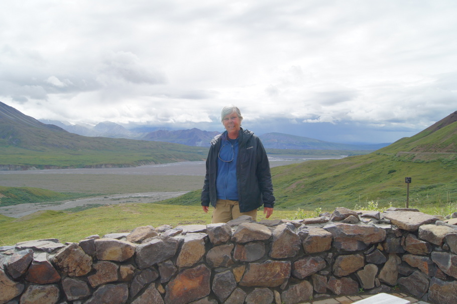 At Eielson Visitor’s Center with Mt. McKinley hidden in the clouds behind Beth
