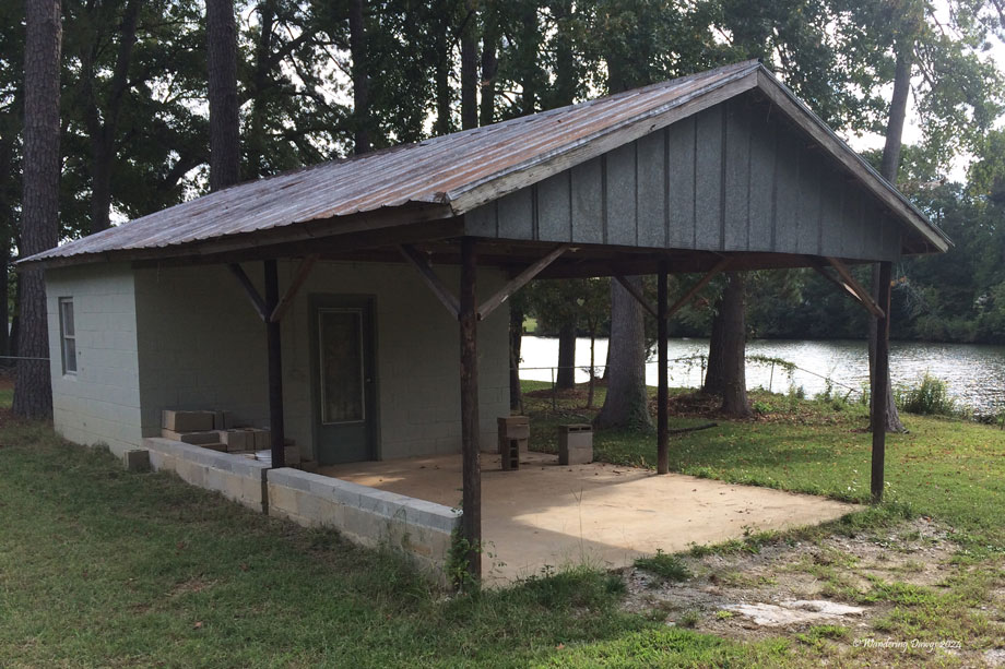 My uncle’s fishing camp long after he was gone. His barbeque pit was to the left of the concrete slab. The picnic tables, chairs, and stew pot were on the concrete under the roof.