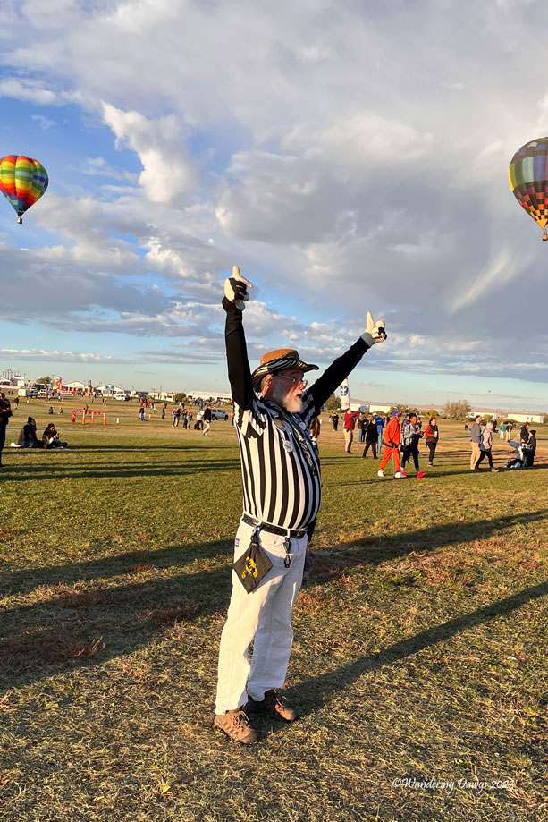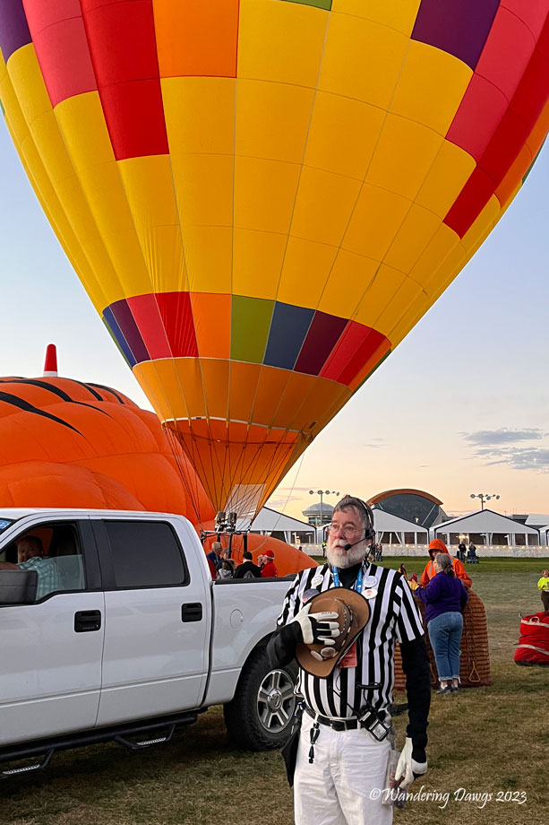 The launch directors are called Zebras because of their black and white striped shirts. Their job is to make sure the balloons take off safely. Once I found my brother Joe I had a hard time keeping up with him as he ran around the field giving the pilots the go ahead to launch their balloon.
