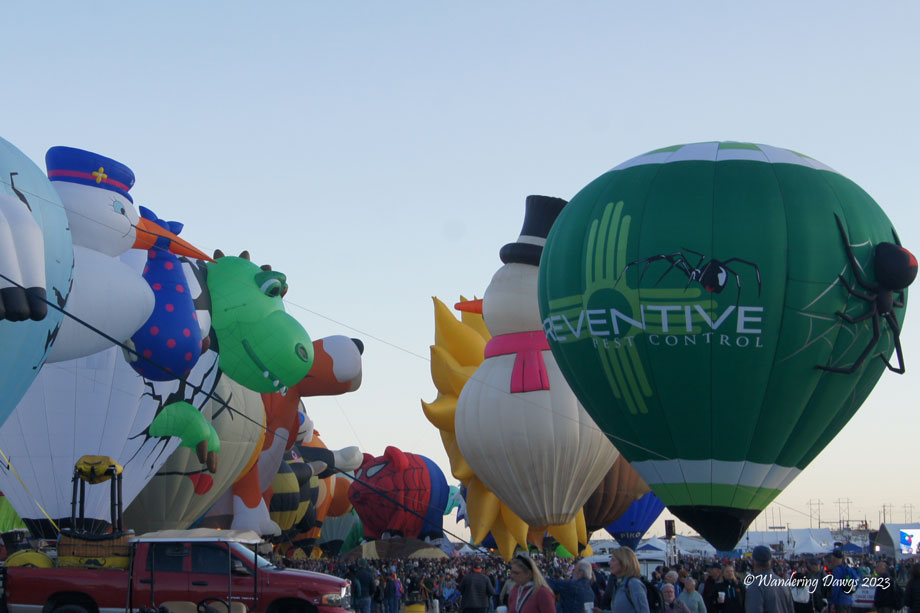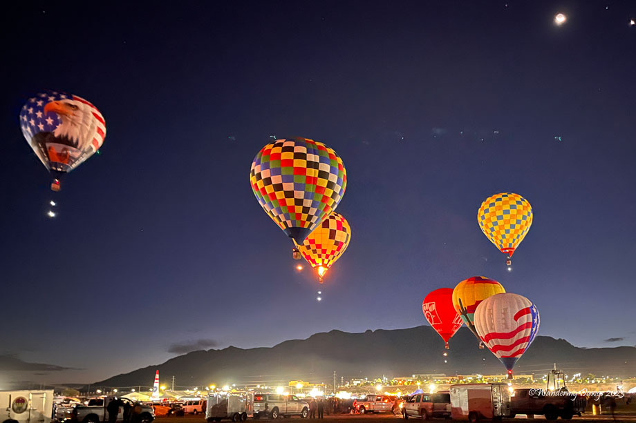 More than 550 hot air balloon pilots and their crews gathered in Albuquerque, New Mexico from October 7 – 15, 2023 for this year’s event. For nine days balloon crews, volunteers and spectators got up in the middle of the night to be at the Fiesta Park before 6:00 a.m. I was one of the many spectators there to take part in this magical event.