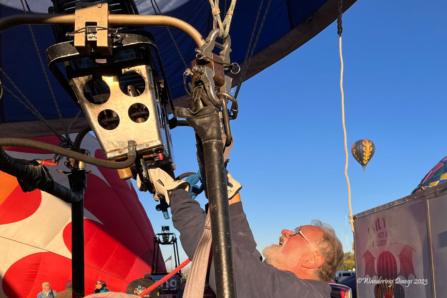 Once the balloon crews started preparing their balloons for flight the field was filled with activity. As I walked around in search of my brother Joe there was so much going on I didn’t know where to look. Balloons were being inflated on the ground as others were launching into the sky. It was sensory overload as the clear blue sky filled with colorful balloons of many shapes and sizes.
