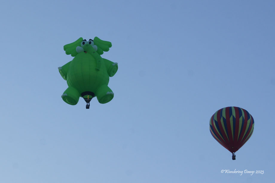 The special shapes balloons are so much fun to see that they deserve their own post. Many of them were flying during the first two days I was at the fiesta.