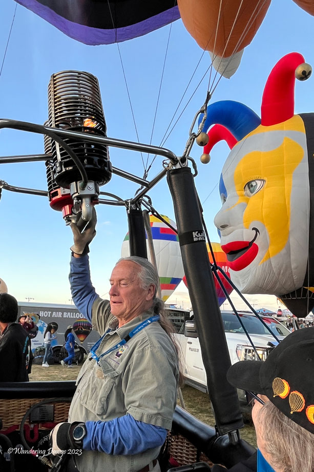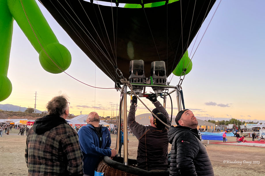 My brother Joe and his wife Kelli were wonderful hosts while I was there. They live in the Albuquerque area and have been involved with the Fiesta since the 1990’s. Joe volunteers as a Launch Director each year and his wife is a balloon pilot. They are part owners of the Evil Twin Balloon with their friends Don and Connie. I chose a photo of their balloon as my header photo.