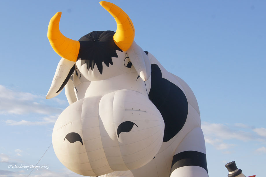 The Special Shapes Rodeo was scheduled for Thursday, October 12. Sadly, the balloons couldn’t fly because of high winds. Luckily for everyone it was safe for the balloons to inflate on the field and set up for a static display. There were many spectators walking through the field getting up close to these creative balloons.