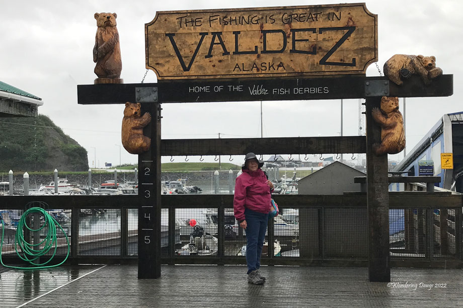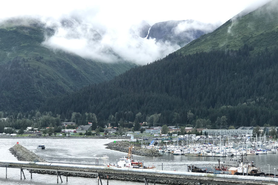 August 23, 2022 – More rain greeted us in Valdez, the northernmost ice-free port in Alaska. The town is located at the tip of a deep fjord in Prince William Sound with spectacular views of the Chugach Mountains. The southern terminus of the Trans-Alaska Pipeline carrying oil from Prudhoe Bay is in Valdez.