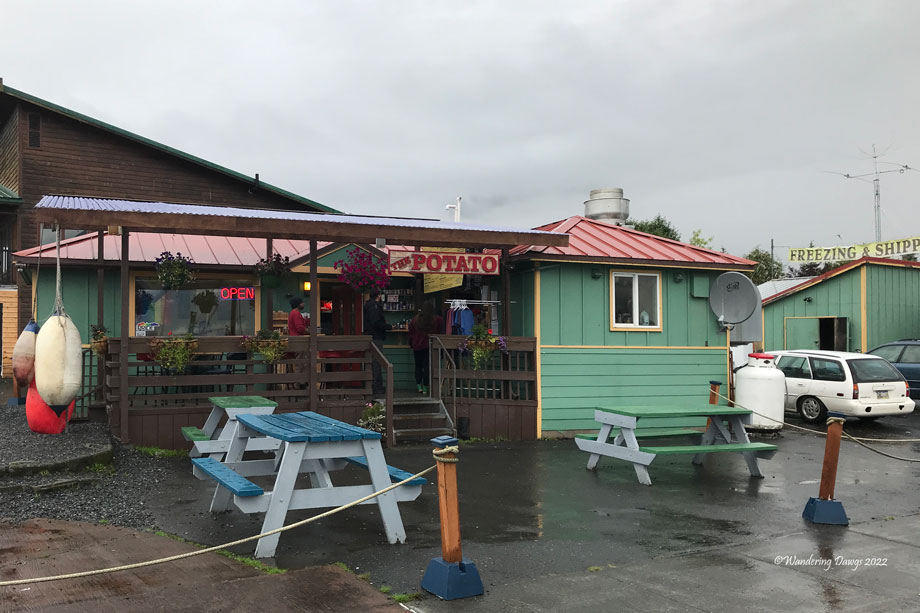 Our tour for the day was aptly named “Valdez on your own.” A shuttle bus picked us up at the cruise ship terminal to take us around the town. Our goal was to wander around the small boat harbor near where we had camped in our RV in August, 2013. We enjoyed wandering around looking at boats, browsing in some of the shops and eating a snack of garlic-rosemary fries at the Potato where we enjoyed talking to our server about the town. She told us the RV park is still there and told us where to find it.