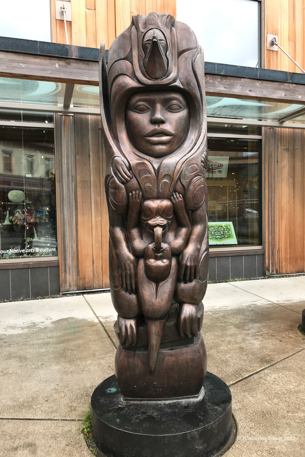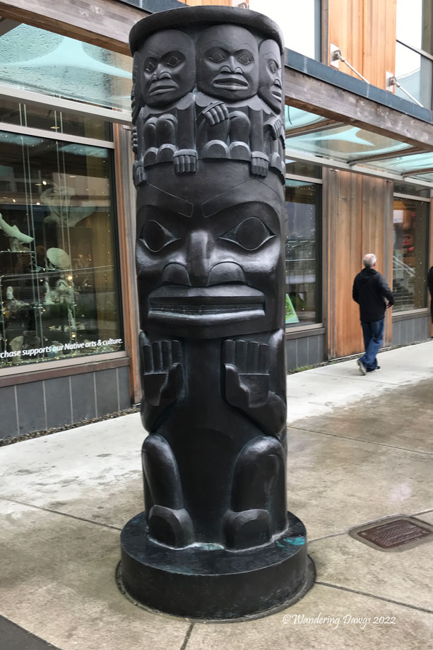 Our meal was delicious and the crab bisque was to die for. By the time we finished lunch the streets and shops were filled with people. As we wandered around the waterfront we discovered some totems and watched several float planes take off and land.
