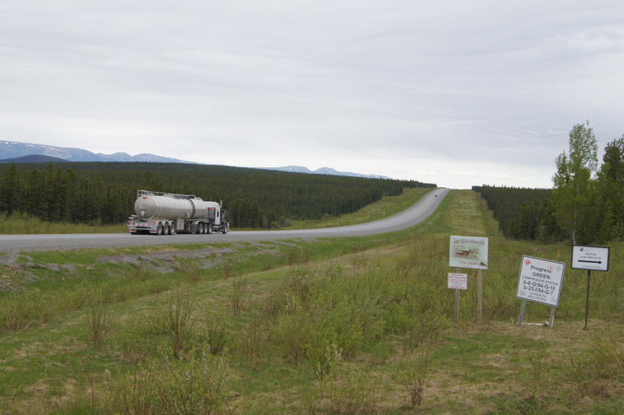 Our journey from Tok to the Yukon border on the Alaska Highway was uneventful. When we stopped at the border crossing in the Yukon we handed the border agent our passports and his first question was “Are you heading home to Georgia?” He had not even opened our passports but he knew we were from Georgia when he saw our Georgia G license plate on the front of the truck! He is a fan of American college football and he and Henry talked football for a minute. Of course he asked the required questions and we were on our way.