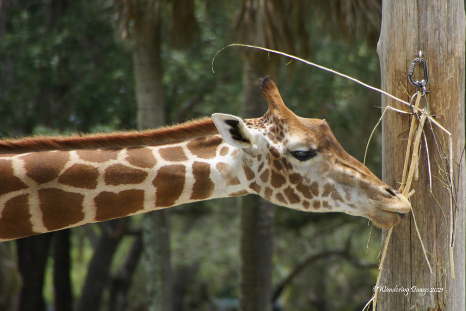 The next day was my birthday. It would be hard to top dinner with Mickey Mouse but we did. Our lunch in Sanaa Restaurant in Kadani Village at the Animal Kingdom Lodge was amazing. The restaurant overlooks a savanna with giraffes, zebras, impalas, wildebeest, and other animals. Before and after our meal we watched the animals from an overlook outside. Our table was at a window with a great view of the animals as we ate. The meal was the best we had all week and the live entertainment outside the window was perfect.