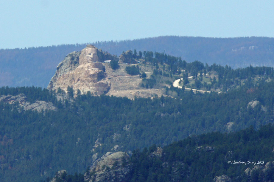 Sometimes in our travels we like to go for scenic drives and if we see a gravel road that looks interesting, we’ll drive on the road just to see where it goes. We stumbled upon this view of the Crazy Horse Monument when we took a turn on a gravel road in Custer State Park in South Dakota