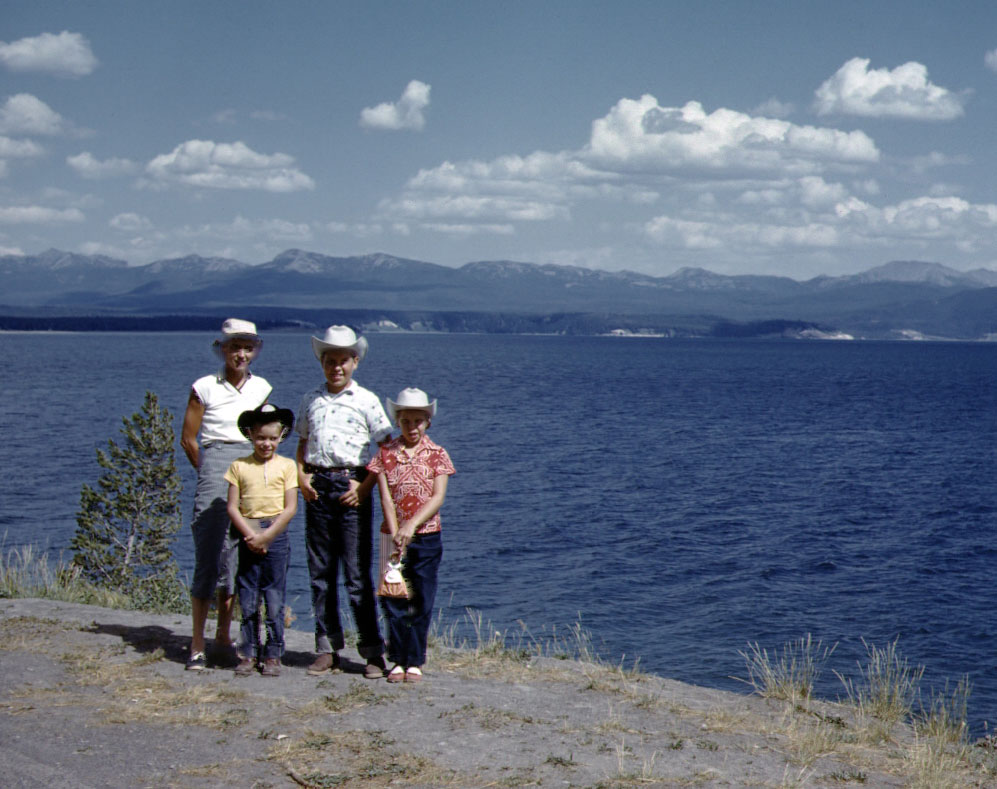 My first big trip that didn’t revolve around visiting grandparents was in the summer of 1959 when I was eight years old. As we traveled from the East Coast to California we passed through many different landscapes and explored several National Parks. Here I am with my Mom and my brothers at Yellowstone Lake.