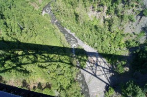 Shadow of the train on the bridge looking down at Hurricane Gulch Shadow of the train on the bridge over Hurricane Gulch