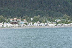 Our campground from the water – we’re in the middle on the back row
