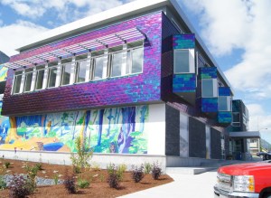 The tiles on the Seward library are designed to look like the Northern Lights