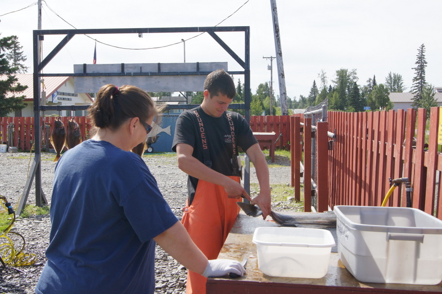 Mate Joey and a helper working on the fish