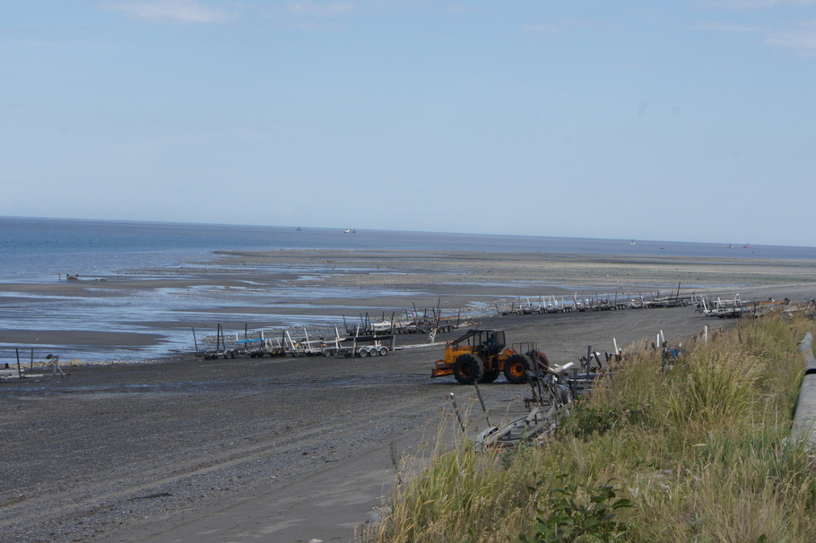 Lots of trailers lined up on the beach