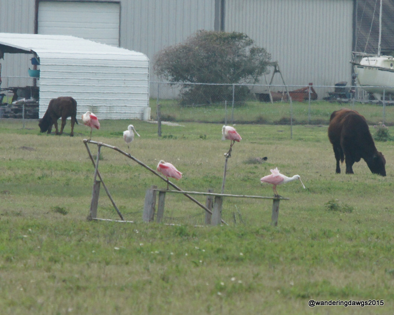 Roseate Spoonbills in farmers field