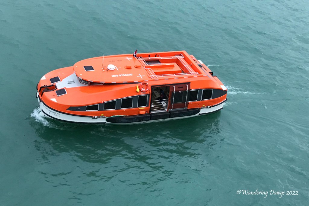 While enjoying a delicious Italian dinner at Manfredi’s that night we watched a Canadian Pilot boat pull along beside our ship. Both vessels were moving as the Pilot boarded our ship.