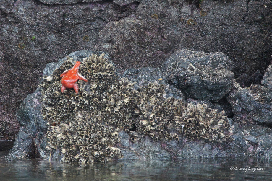 Our captain took us through a narrow passage where we had a close up view of tree covered islands. Our guide was a naturalist who pointed out interesting things to see like the orange starfish in the next photo.