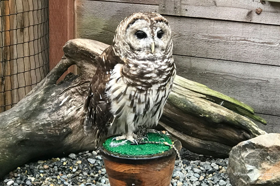 We came out of the forest and walked to the Alaska Raptor Center where we were introduced to these three birds. The birds were rescued after receiving injuries that would prohibit them from surviving in the wild. The mission of the Alaska Raptor Center is to promote and enhance wild populations of raptors and other avian species through rehabilitation, education, and research.