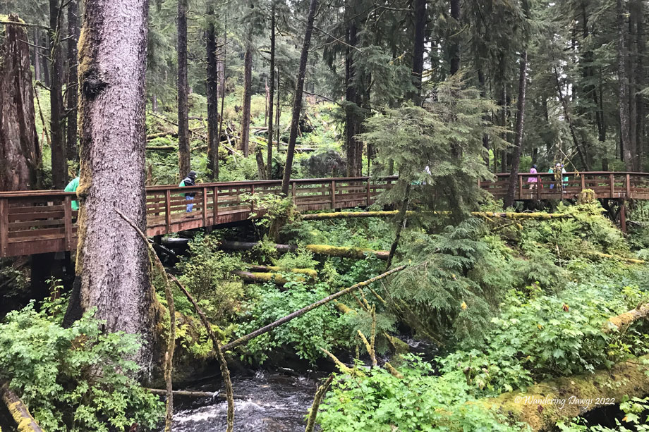 August 29, 2022 – Shortly after the ship docked in Ketchikan we boarded a bus for a scenic drive to Herring Cove in the Alaska Rainforest Sanctuary. The tour started with a nature walk on an easy path through the forest to raised boardwalks beside Eagle Creek. Our guides Bryn and Claire were on the lookout for Black Bears that come to the creek to fish for salmon. We learned Eagle Creek is named for the many Eagles that are often seen there. Unfortunately, we didn’t see any that day.