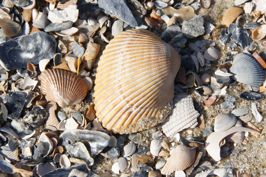 Another common sight at the beach is seashells that have washed ashore.