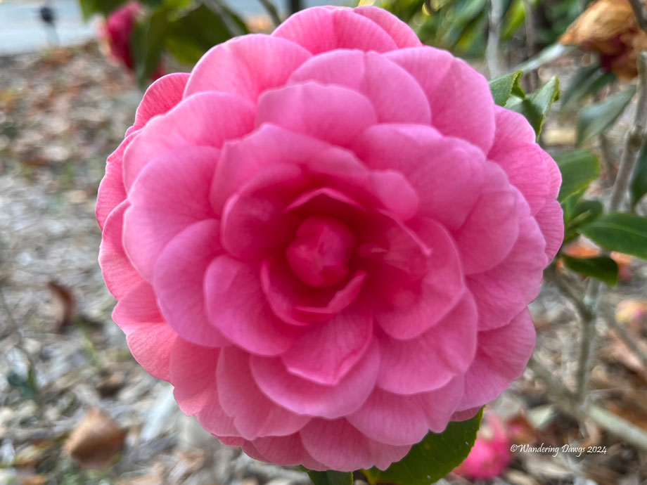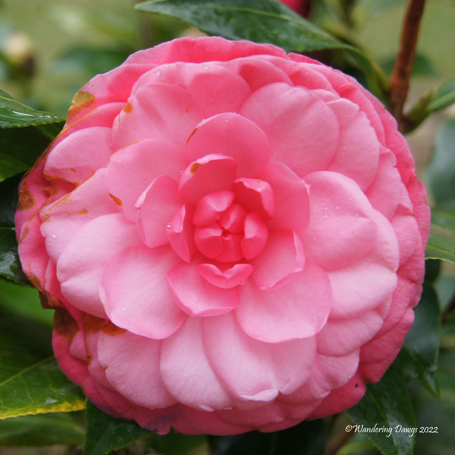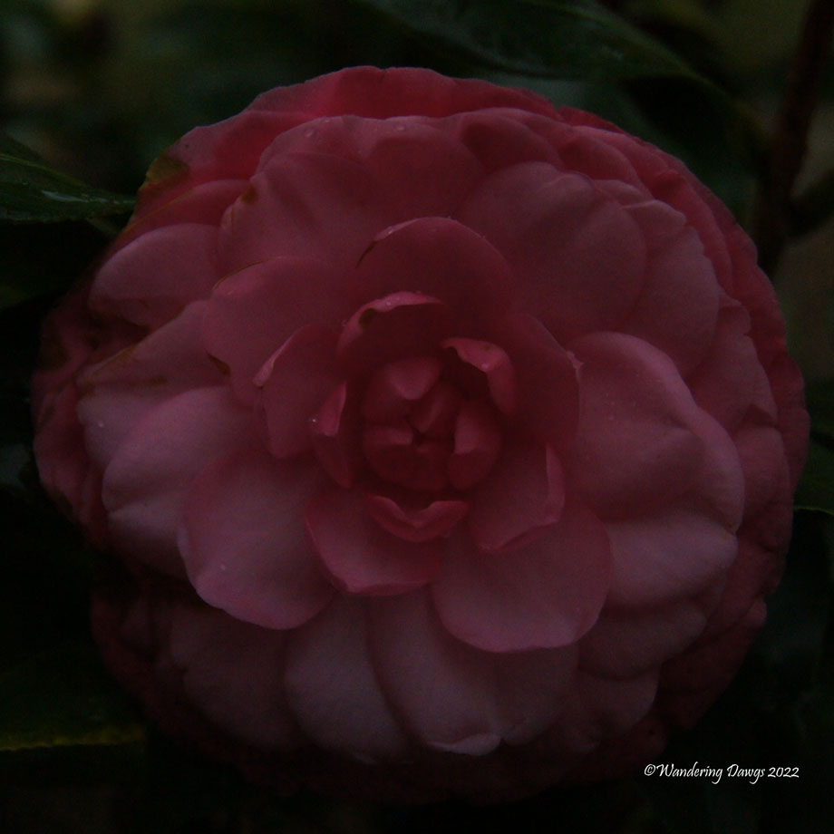The camellias are blooming and I’ve been trying to get a perfect shot of them. To focus on the flower I cropped this original into a square and applied the Watercolor effect. The finished image below shows the details of the flower and the rain drops on the petals.