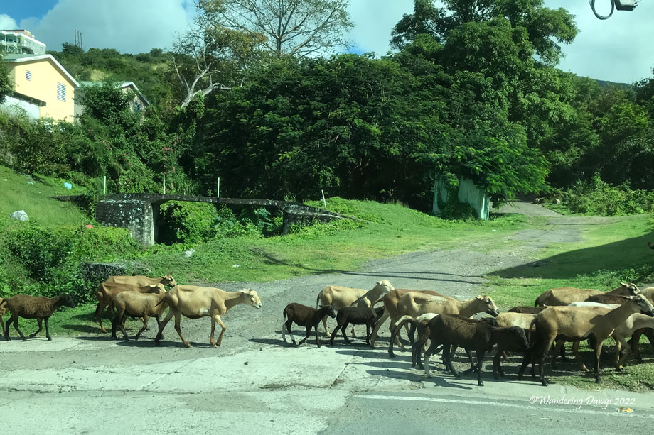 Our tour started with a scenic drive to the scenic railwayKalinago Rock Drawings, St. KittsGoats crossing the street in St. Kitts