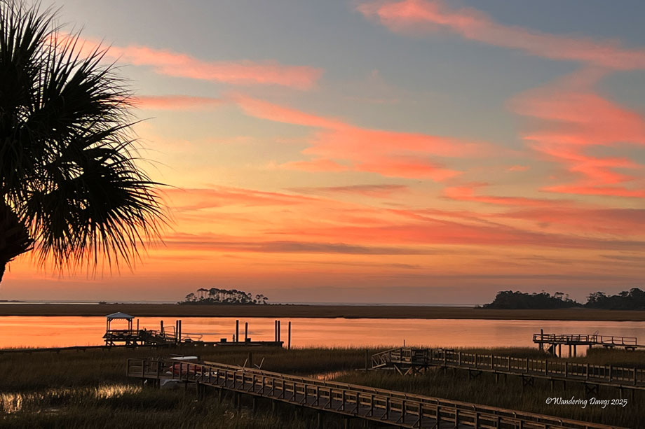 Where I live in coastal Georgia we don’t get the bright orange, red and yellow leaves on our trees. Instead, our sunrises and sunsets paint our sky a brilliant orange. The featured image was taken a few days ago when the sky was so glorious at sunset I had to stop and get out of my car to take a few photos.