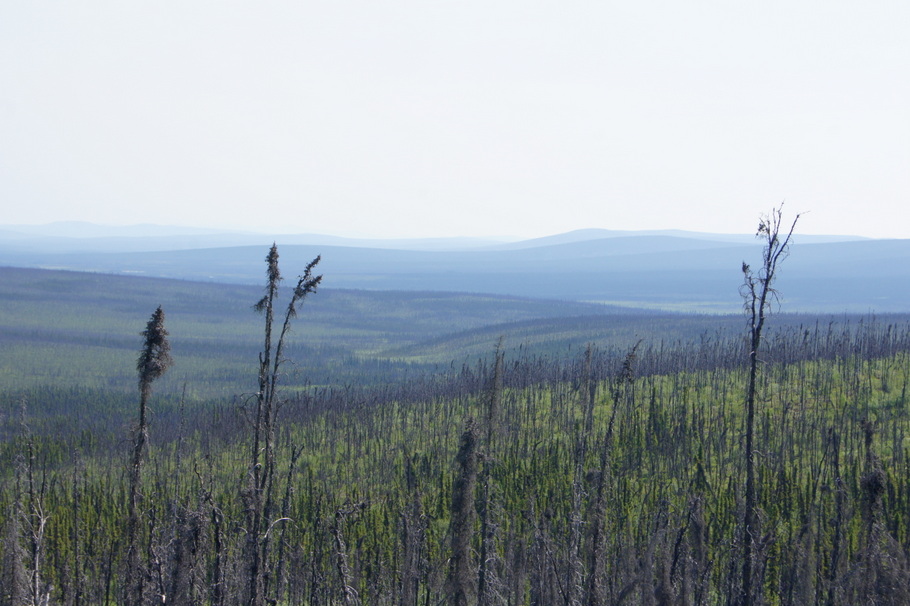 Our journey continued on the Taylor highway. After a few miles we finally were back on pavement! We hit a few more spots with gravel before we turned back onto the Alaska Highway to Tok. In many places we could see evidence of forest fires.