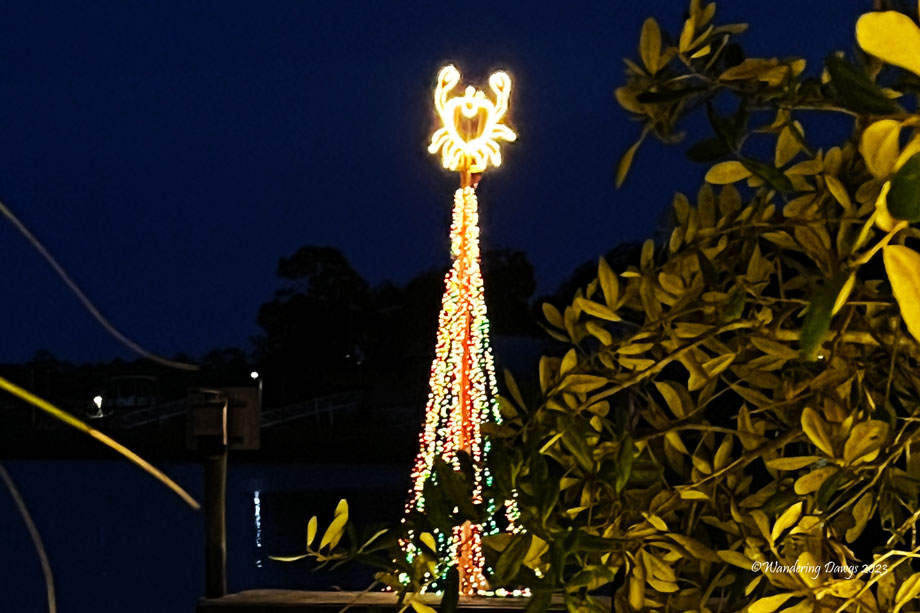 We have lived on the Georgia coast for many years. Many of the Christmas light displays have a beach theme with lighted palm trees and even mermaids.