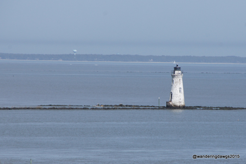 The Cockspur Island Lighthouse is shown in the next pair. On the left is a closeup of the lighthouse at high tide as seen from a boat. On the right is the lighthouse as seen from the Lighthouse trail at Ft. Pulaski National Monument near Tybee Island. If you look closely at the image from the trail you can see the top of the Tybee Island Lighthouse to the right of the water tower on the other side of the water behind the lighthouse.