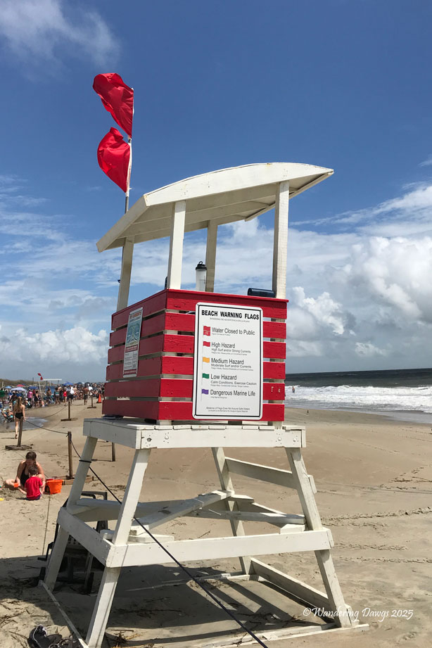 Before a hurricane the red flags indicate high hazard conditions and the beach is closed to the public.
