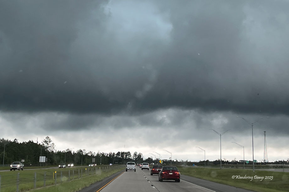 It’s June and Hurricane Season has just begun. Where I live in coastal Georgia thunderstorms are a normal occurrence all summer long and we keep a close watch on updates from the National Hurricane Center. The featured image is what we saw through our windshield as we were headed into a thunderstorm on our way home from a recent trip. We were grateful to arrive home safely.