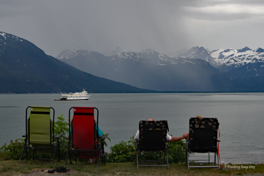 We enjoyed relaxing with Ted and Ruth Ann and feasting on clam chowder that Ruth Ann made from the razor clams that Ted had dug that morning. Henry cooked hamburgers on the grill to finish up a great dinner. As we sat by a campfire after dinner we could see about 2 adult eagles and 4 or 5 young eagles soaring over the bluff by the mouth of Deep Creek.