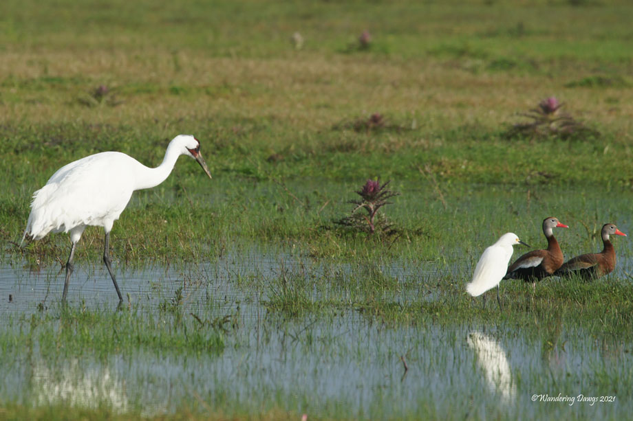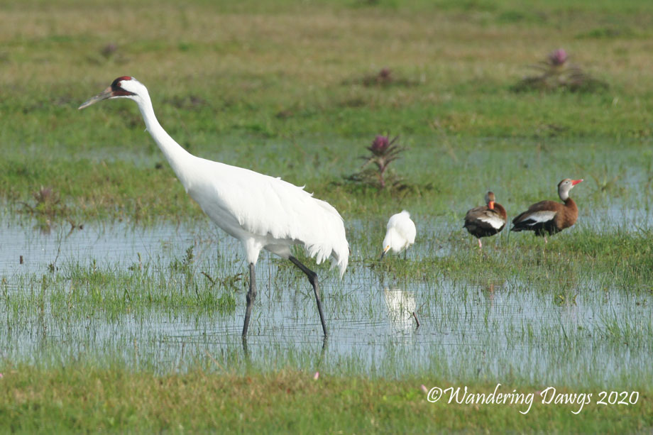 We found these magnificent Whooping Cranes near Goose Island State Park, south of the Aransas National Wildlife Refuge. I posted about this amazing experience at Magnificent Endangered Whooping Cranes.