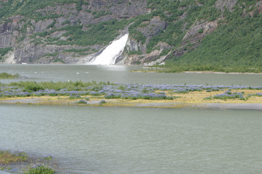 Waterfall with wildflowers